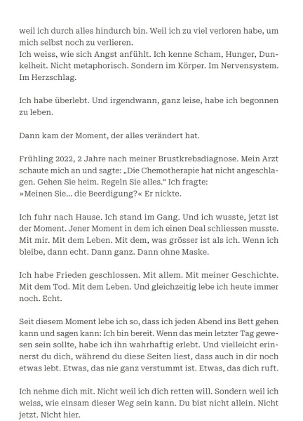 Dieses Buch ist für Menschen, die viel halten, die weiter funktionieren, obwohl innen etwas fehlt. Für alle, die spüren, dass es Zeit ist, wieder zurück zu sich selbst zu kommen.